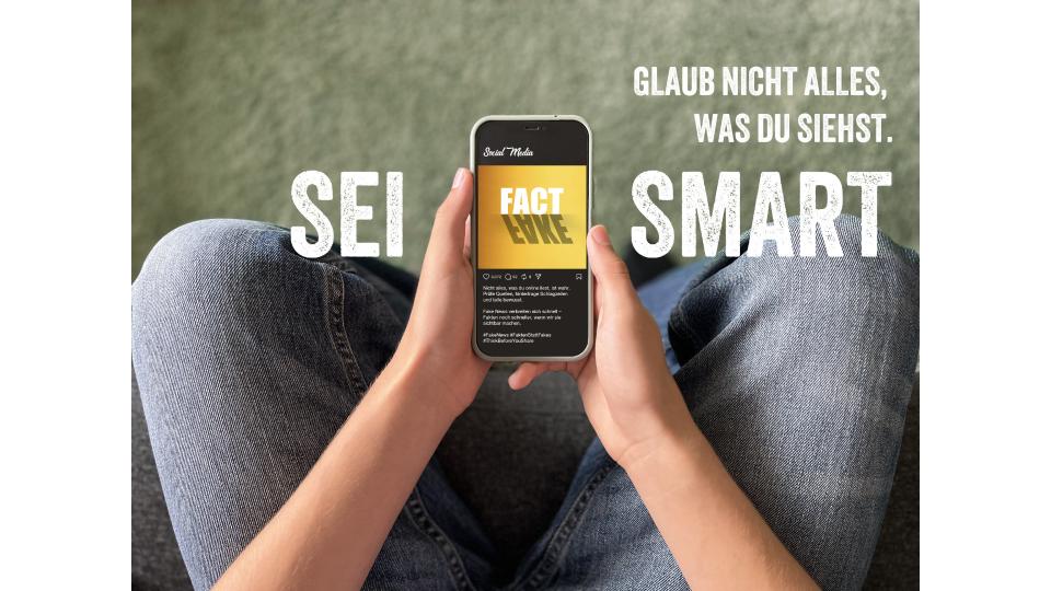 „Sei Smart – Glaube nicht alles, was Du siehst“ Till Hoffmann und David Mersch Klasse 9, Maria-Wächtler-Gymnasium Essen 3. Preis für die Sekundarstufe I im Wettbewerb EuroVisions 2025 / ©Maria-Wächtler-Gymnasium Essen