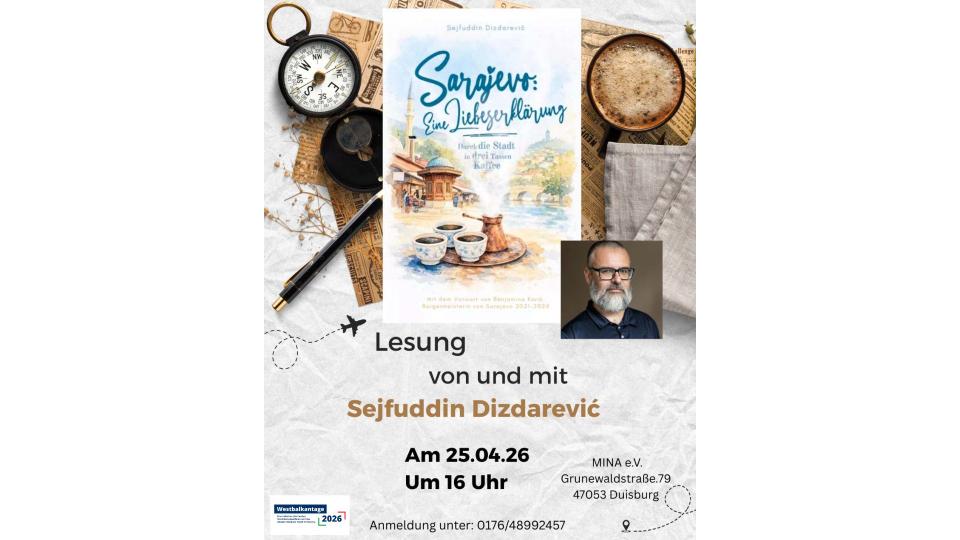 Sarajevo ist mehr als nur eine Stadt - es ist ein Gefühl, ein Ort, an dem Geschichte an jeder Straßenecke lebendig wird und Kulturen auf besondere Weise miteinander verschmelzen. Der in Duisburg ansässige Verein MINA e.V. lädt zu einer Lesung ein, die genau dieses Sarajevo erlebbar macht.
