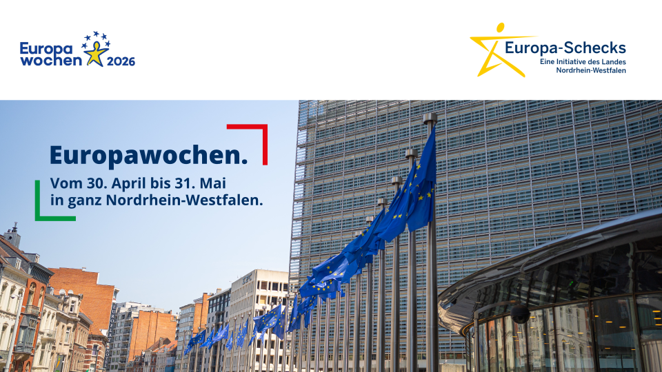 Mit der Landesinitiative „Europa-Schecks“ unterstützt die Landesregierung Nordrhein-Westfalen herausragende Projekte europäischen Engagements, die sich in vielfältiger Weise für die europäischen Werte in NRW einsetzen, den Europagedanken in der Zivilgesellschaft und kommunalen Familie stärken und den Menschen die unterschiedlichen Facetten einer lebendigen Demokratie näher bringen. Dabei liegt ein besonderer Fokus auf den Europawochen im Mai, in denen Europa bundesweit in den Mittelpunkt rückt - so auch in Nordrhein-Westfalen.