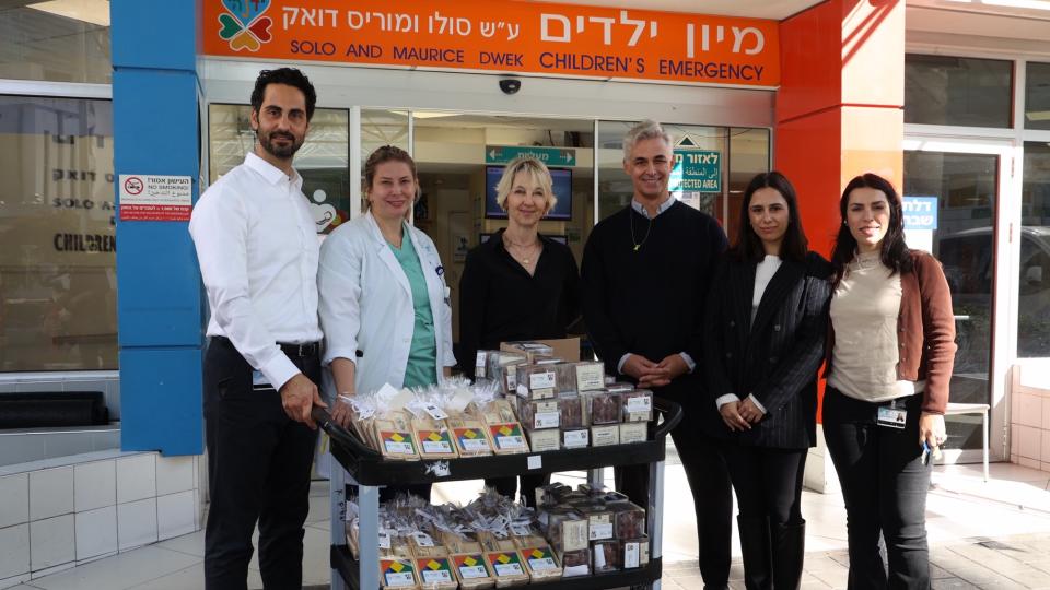 Dr. Gil Yaron, Leiter des Büros des Landes Nordrhein-Westfalen in Israel, besuchte verschiedene Abteilungen im Krankenhaus, um 600 Feiertagspräsente an Patienten und Mitarbeiter zu übergeben. Die nachhaltigen Geschenke wurden von der Organisation Makom Katan Balev hergestellt, eine Initiative, die die Integration von Erwachsenen mit Behinderungen im Arbeitsmarkt ermöglicht.