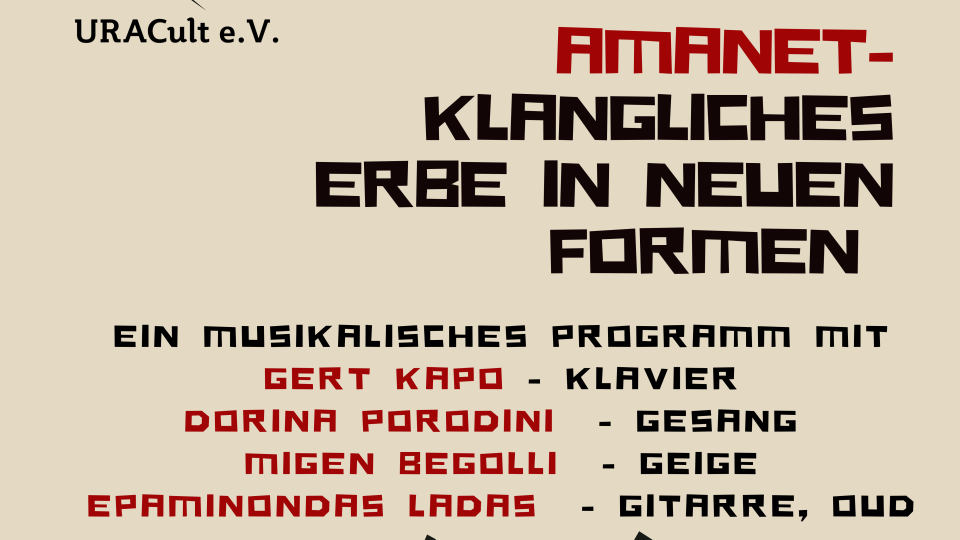 20 Uhr, Eintritt freiMusikalischer Abend: Amanet – Klangliches Erbe in neuen Formen